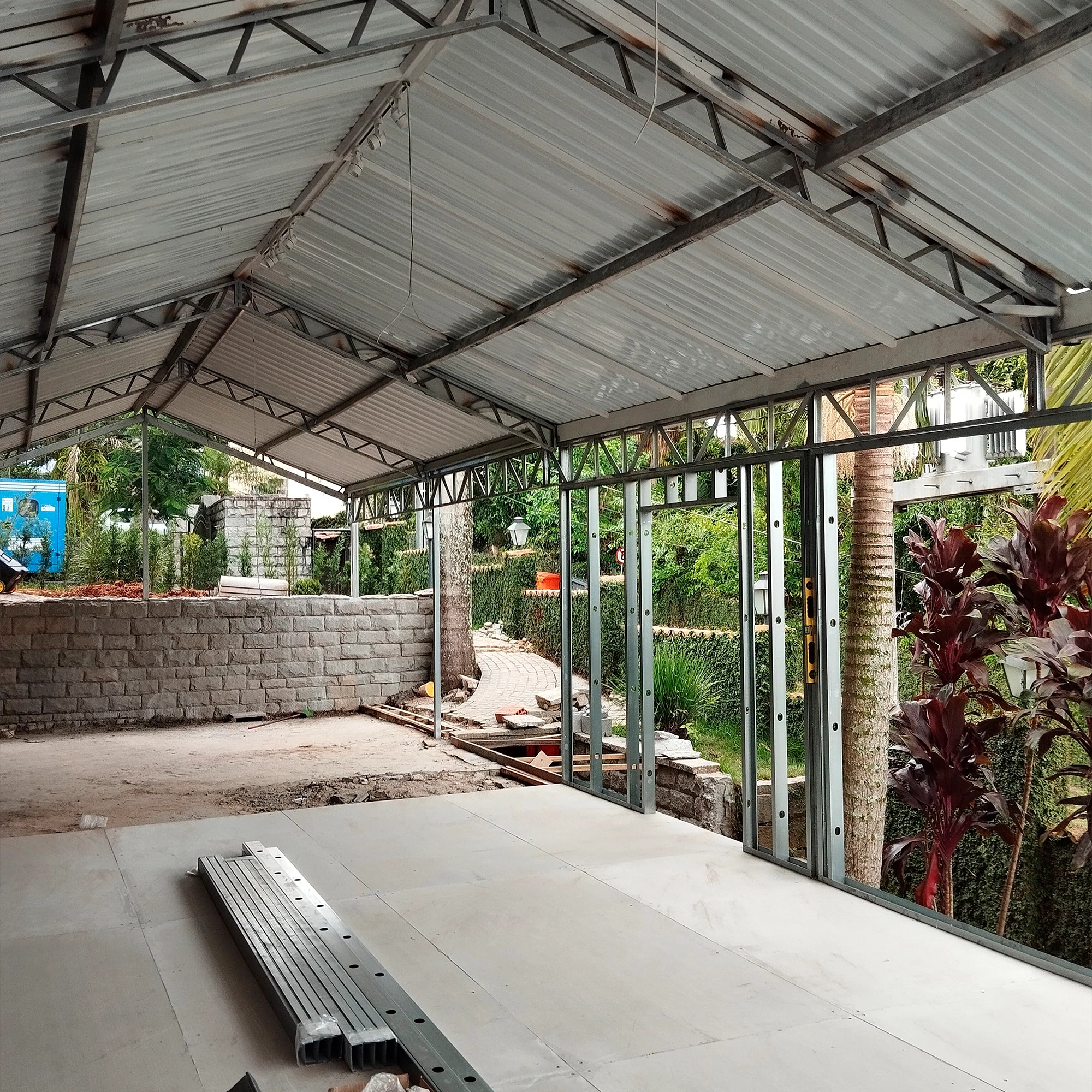 O Steel Frame é perfeito para residências modernas, salas comerciais, ampliações, áreas de atendimento, escritórios e qualquer ambiente que demande agilidade e precisão. Além disso, permite a integração de drywall, assegurando excelente isolamento acústico e térmico.